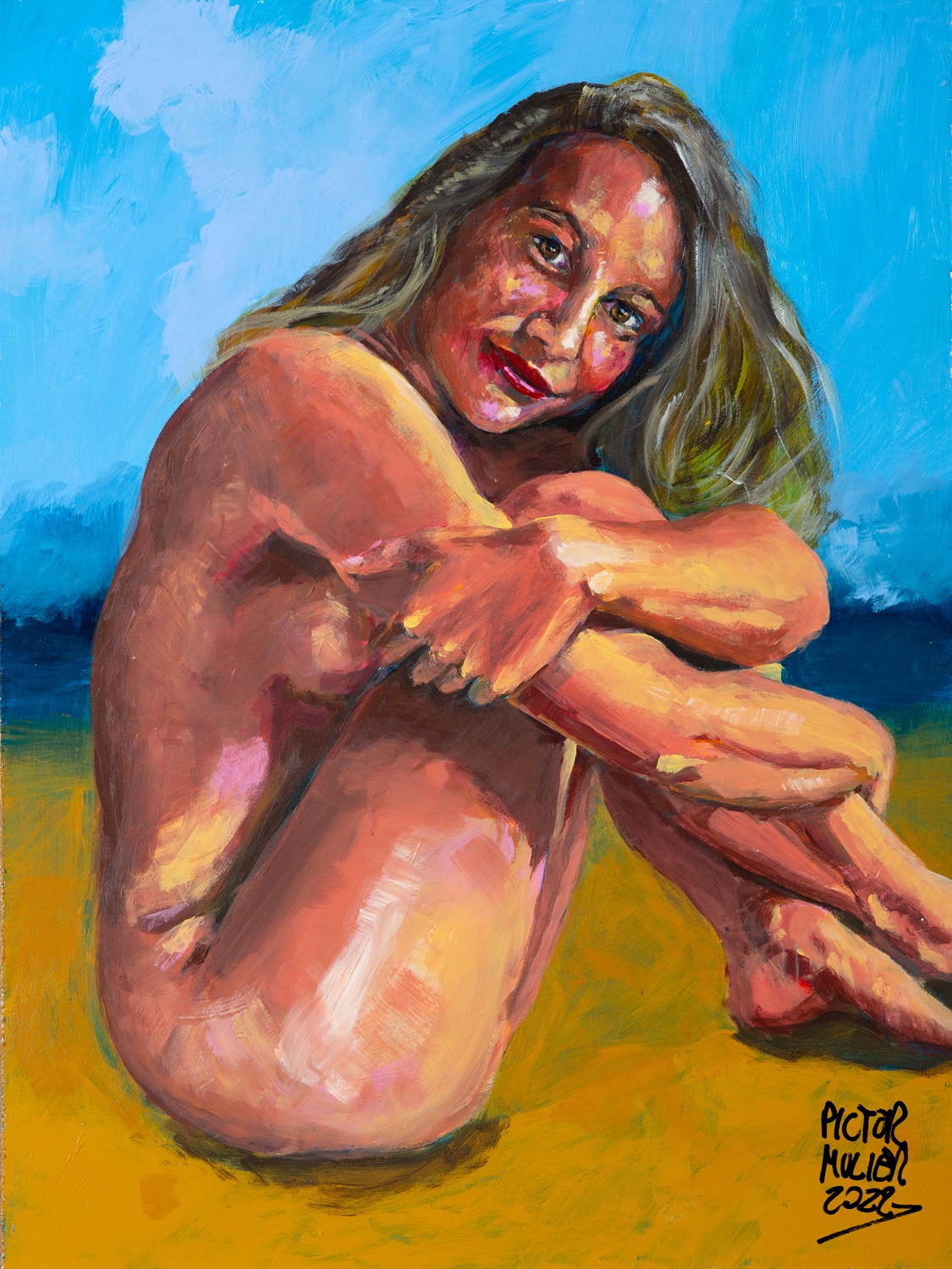 Each brushstroke by Pictor Mulier celebrates the boldness of these fearless muses—women who expose themselves without shame or guilt, proud of their bodies as temples of desire and freedom. Their skin glows under the sun like an irresistible spell, reclaiming the right to be admired, desired, worshipped. They are untamed goddesses in their kingdom of sand and water, absolute owners of their pleasure and image.