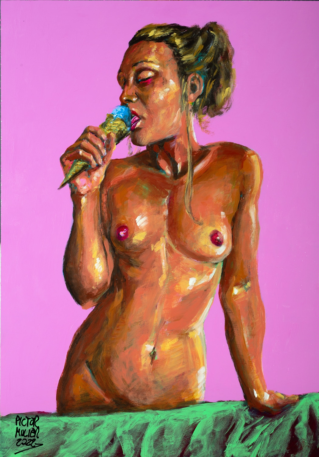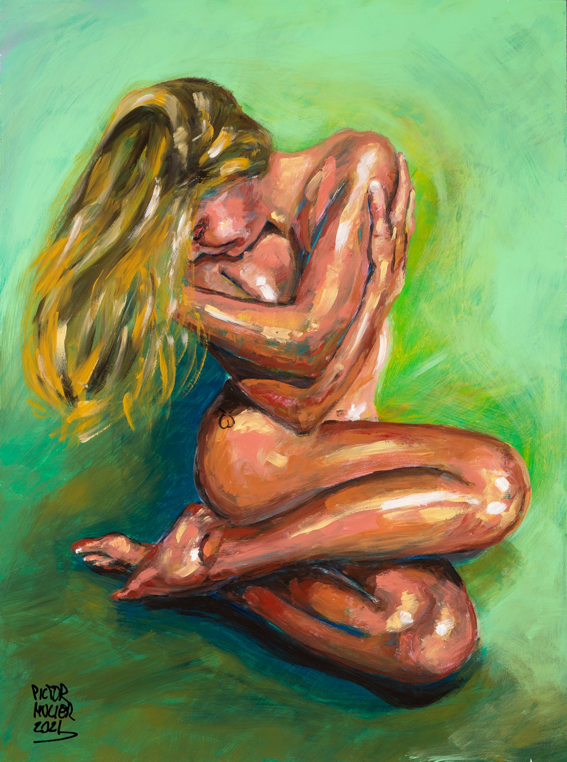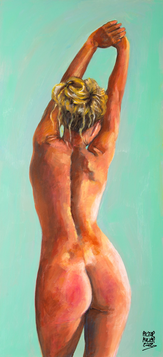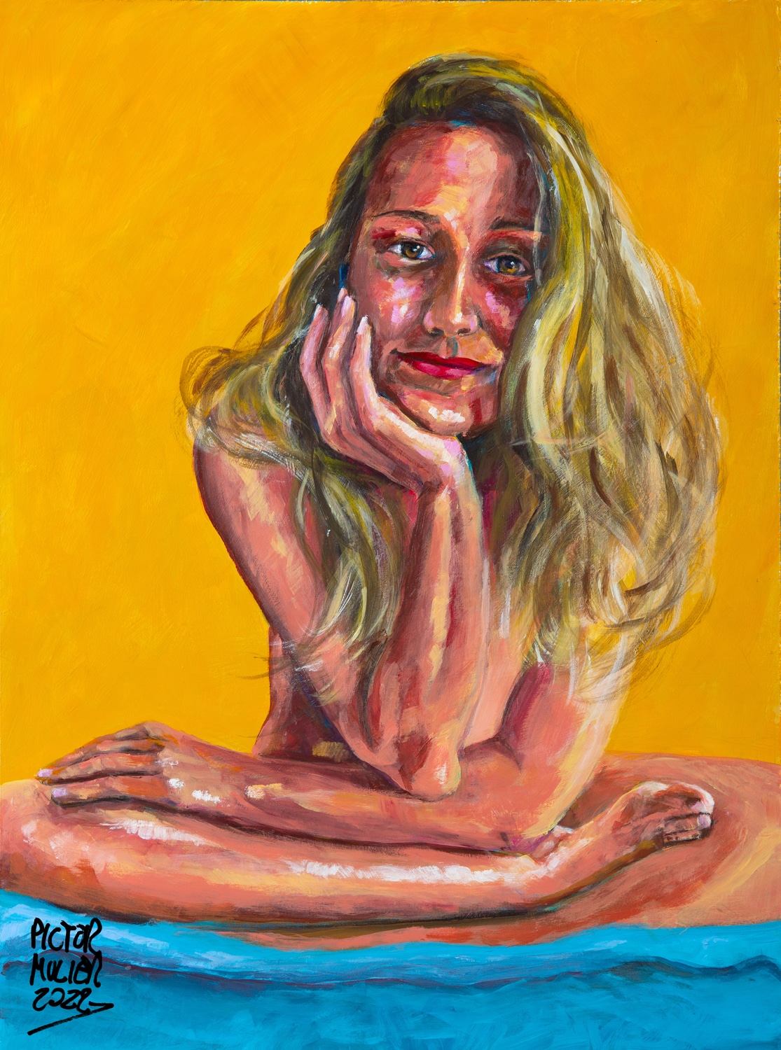 Sus retratos y desnudos son un recorrido por mi evolución como artista. Desde el primer cuadro, «La cascade du plaisir» del año 2015, hasta mis últimas obras, se puede apreciar cómo ha evolucionado mi técnica.